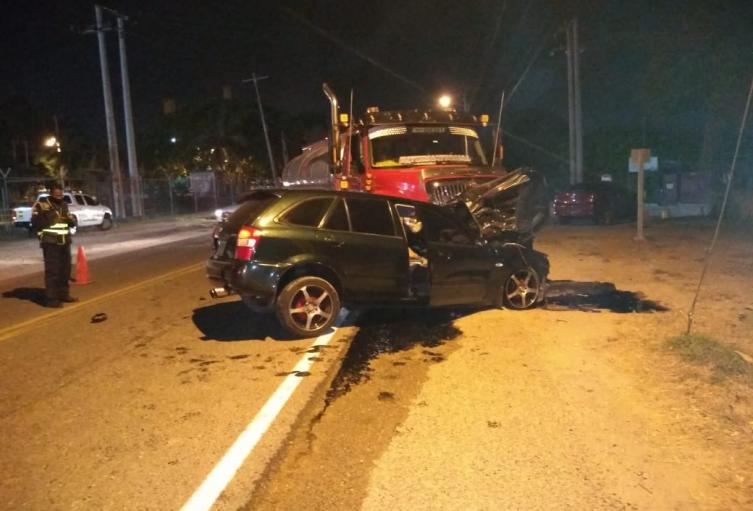 Eran las 10 de la noche de ayer miércoles 23 de diciembre cuando un camión cisterna y un automóvil terminaron accidentados en el kilómetro 8 en frente de Atunes de Colombia.