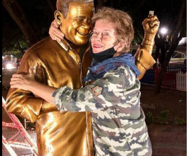 Hija de Charlin Chaplin se fotografió con estatua de Iván Villazón