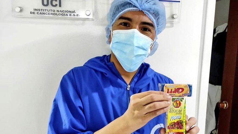 “A algunos de los auxiliares de UCI del Cancerológico no los incluyeron en el pago del bono de covid. Esto les dieron en el turno la noche de navidad en primera linea del covid. El Gobierno dejó que cada institución jugara con el pago a su voluntad. ¡Esto debe cambiar!”, aseveró el legislador, quien acompañó su trino-denuncia con una foto de uno de los profesionales de la salud que se ve con unas galletas y un jugo de cajita.