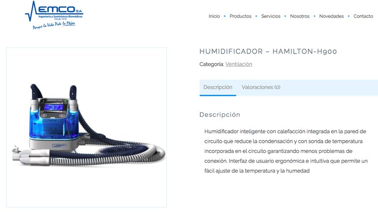 Se trata de los ventiladores a Hamilton H900, los cuales se encuentran comercializados en Colombia bajo la titularidad de Electrónica Médica y Control Emco S.A.. Dicha empresa se encuentra registrada en Medellín, con operaciones en el departamento de Antioquia. Según la página del comercio, dichos ventiladores aún hacen parte del catálogo.