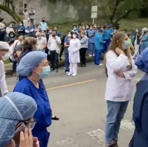 En el video tomado por Guardianes Antioquia se pueden apreciar aproximadamente unas 300 personas saliendo de manera caótica de las instalaciones de la institución y, algunas de ellas están sobre la vía (calle Sur) con camillas esperando a que personal de bomberos atienda la emergencia.