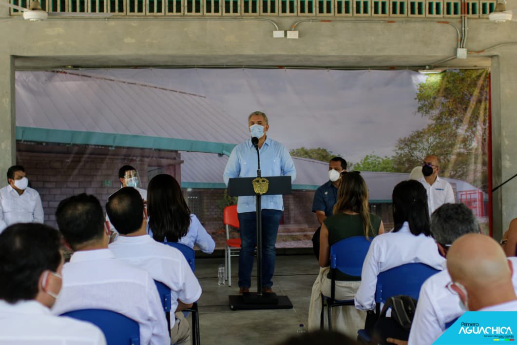 Con la presencia del presidente Iván Duque, el Gobierno nacional, a través del Fondo Adaptación, entregó este jueves la Institución Educativa Santa Teresa en el corregimiento Puerto Patiño, en el municipio de Aguachica.