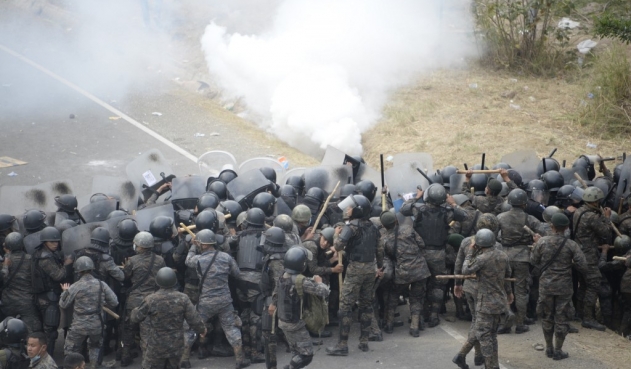 El grupo que marcha a la cabeza, conformado por unas 3.500 personas, chocó con decenas de policías y soldados desplegados en el punto de control en el poblado de Vado Hondo, en Chiquimula. Tras empujones, varios pasaron, aunque fueron interceptados más adelante. En la gresca un militar resultó herido, indicó Migración.