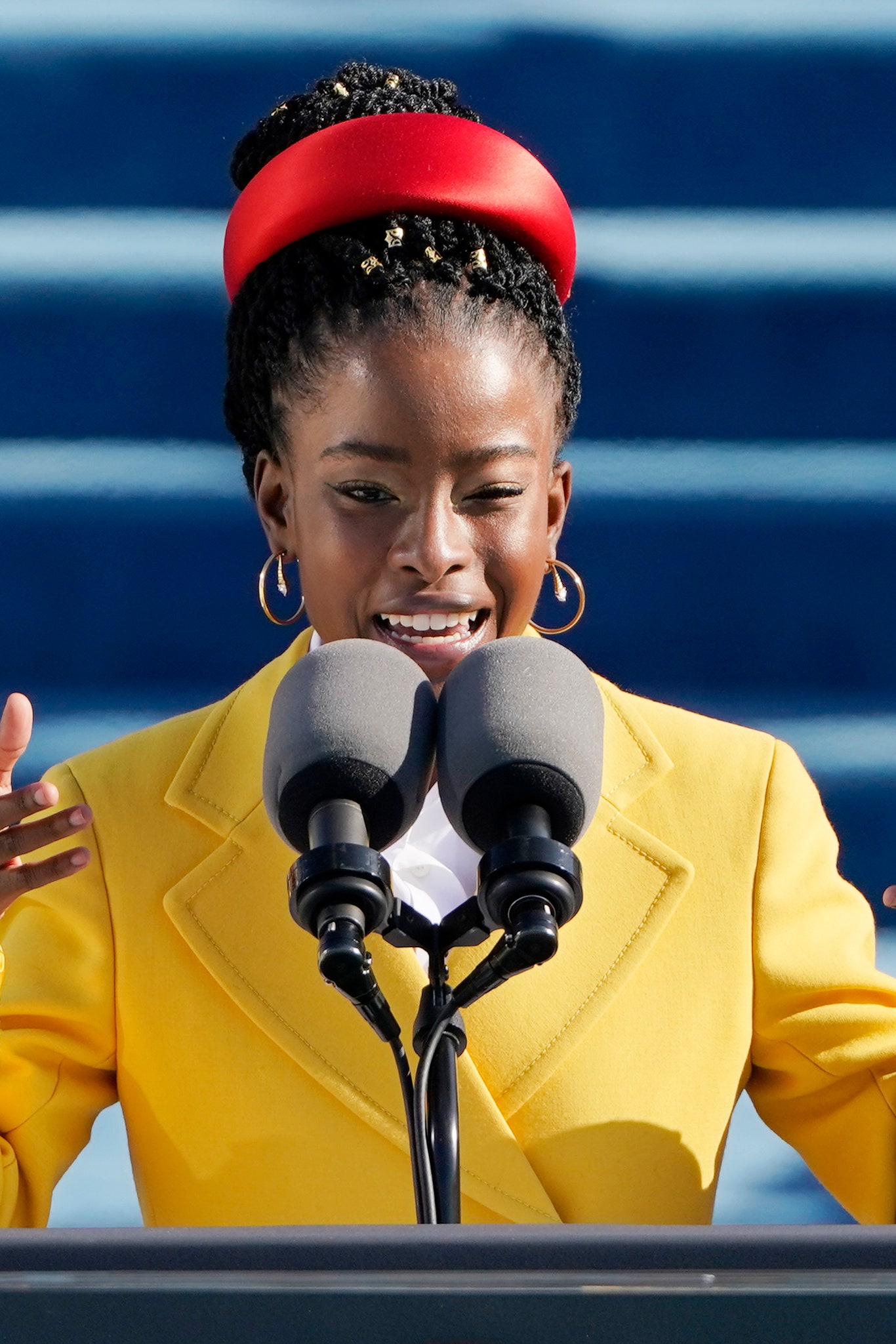 Y lo ha hecho vistiendo un potente look que ha acaparado, junto con su poema, la atención de todo Instagram. La poeta de 22 años, residente en Los Ángeles, optó por un llamativo estilismo firmado por Miuccia Prada, a la que dice admirar tanto por su intelecto como por su postura feminista. El color amarillo de su abrigo fue una alusión a Jill Biden, quien se lo había recomendado para la ceremonia tras ver un vídeo de ella en el que recitaba un poema llevando ese mismo tono. En contraste, optó por una una de las virales diademas de raso de la firma italiana en color rojo. Otro de los complementos más especiales fue el anillo que llevó con un pájaro enjaulado, un regalo para la ocasión de Oprah Winfrey que le servía como guiño a su vez a Maya Angelou: “Va dedicado a las mujeres que han escalado mis colinas antes”, escribía Gorman en Twitter, haciendo referencia también a Angelou, también una de las poetas que fue invitada a dar un discurso en la inauguración presidencial.