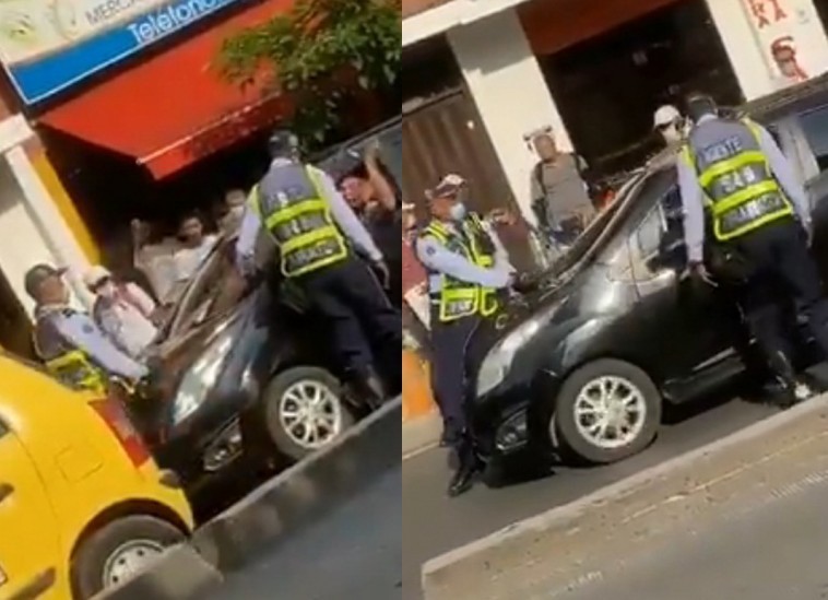 Según informaron las autoridades, los servidores públicos abordaron al hombre sobre la calle 15 al percatarse de que este sujeto se encontraba mal parqueado y al acercarse para multarlo, este intentó escapar y reaccionó de manera violenta contra los agentes. En el video se ve cómo les tiró el carro encima.