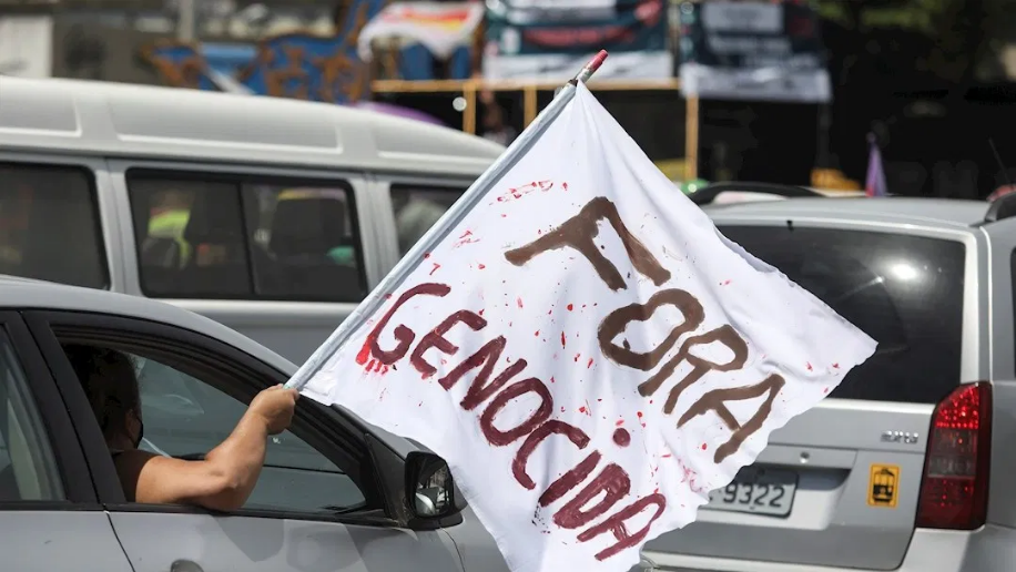 Los desfiles de vehículos llamando la atención con sus bocinas y portando banderas y carteles con mensajes contra Bolsonaro y en favor de medidas eficaces contra la pandemia se multiplicaron en las capitales regionales, pero también en ciudades medianas.