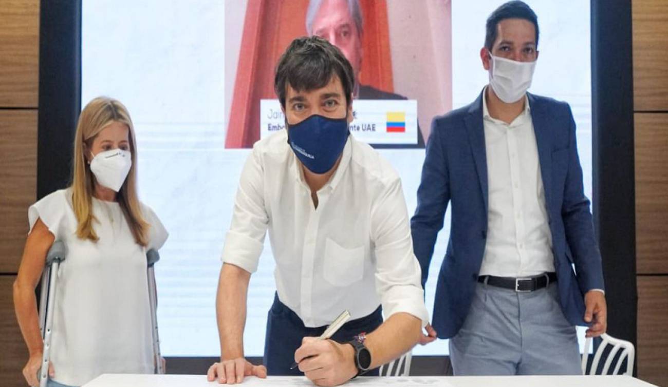 La ceremonia virtual que realizó desde el Centro de Eventos Puerta de Oro en Barranquilla, contó con la participación del Embajador de Colombia en Emiratos, Jaime Amín, desde Abu Dabi, quien destacó que con esta donación son 100 toneladas métricas que han entregado, 5 por avión y una en barco, con el fin de atender la emergencia sanitaria por el coronavirus.