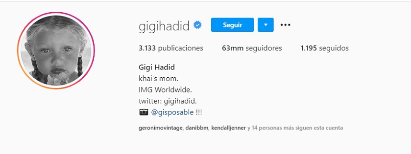 Gigi Hadid, perfil en Instagram