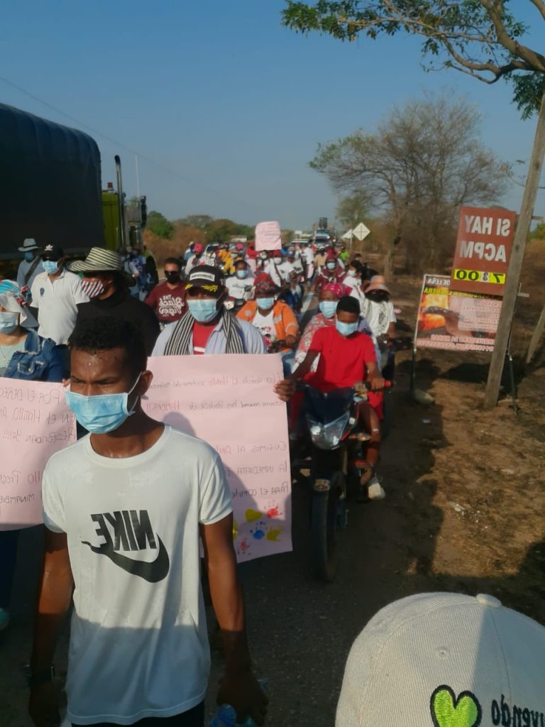 Por tal motivo, desde las 6:00 de la mañana de hoy, más de cien miembros de la comunidad marchan para llamar la atención de las entidades gubernamentales. La primera acción fue cerrar la Troncal de Caribe por 40 minutos y llegaron a la mina de la empresa CNR en espera de una respuesta por parte de sus representantes, informó Yolima Parra, líder de la comunidad de El Hatillo.