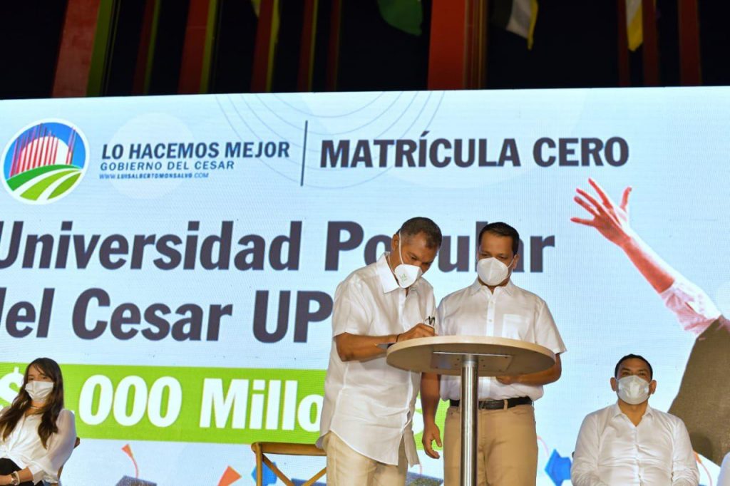 “Queremos que la matrícula cero no sea solo una solución coyuntural en el marco de la pandemia. Queremos ir más allá; con la bancada parlamentaria, ya empezamos a trabajar de forma conjunta para conseguir que el Cesar se convierta en la primera entidad territorial que alcance la gratuidad en educación superior”, precisó el mandatario desde la plaza de banderas de la Gobernación.