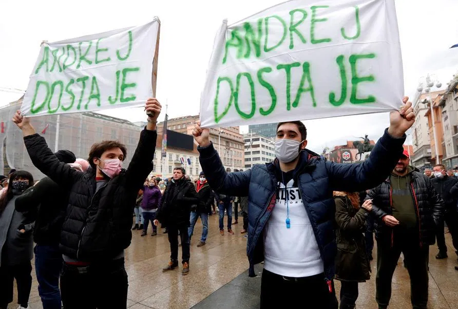 Miles de comerciantes protestan en Croacia contra restricciones por COVID-19