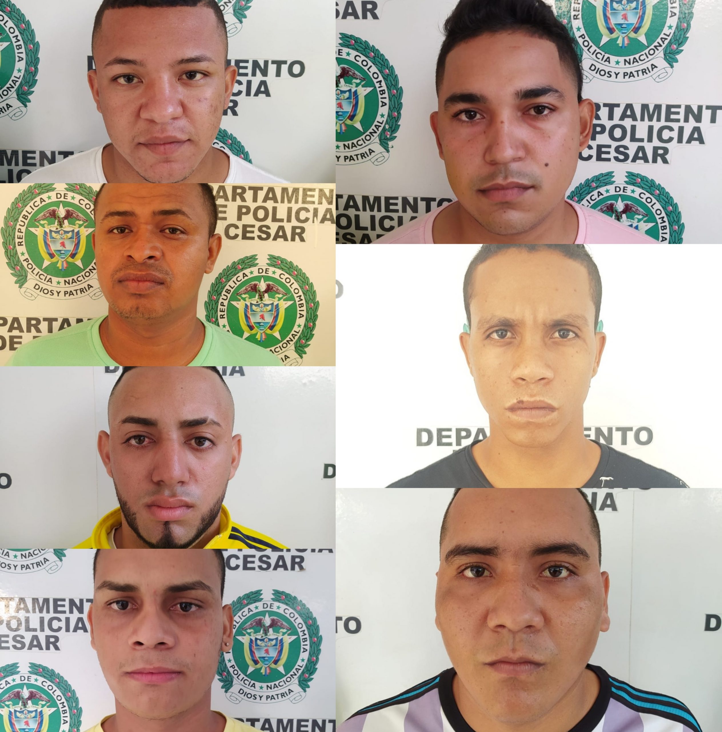 Los detenidos fueron identificados como Jamer Yesid Fernández, de 23 años; Marlon García Salas, alias ‘Negro Splendor’, de 27 años; Andrés Alfonso Mejía Peralta, alias ‘Tres pelos’, de 21 años; Iván Alfonso Tovar, alias ‘Ivancho’ de 22 años; Luis Alfredo Nieves, alias ‘Lucho’ de 23 años; Fanet Soracá, de 20 años y Álvaro José Haydar Rasgo alias ‘El Buo’ de 23 años.