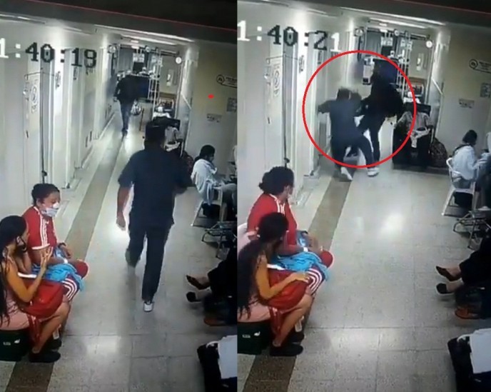 EL hecho quedó grabado por una cámara de seguridad y en ella se aprecia cómo el agresor le metió un tremendo puño al enfermero que atendía a un familiar suyo, el cual supuestamente estaba en delicado estado de salud. Según informaron, la agresión se debe a que se estaban demorando mucho en atenderlo.