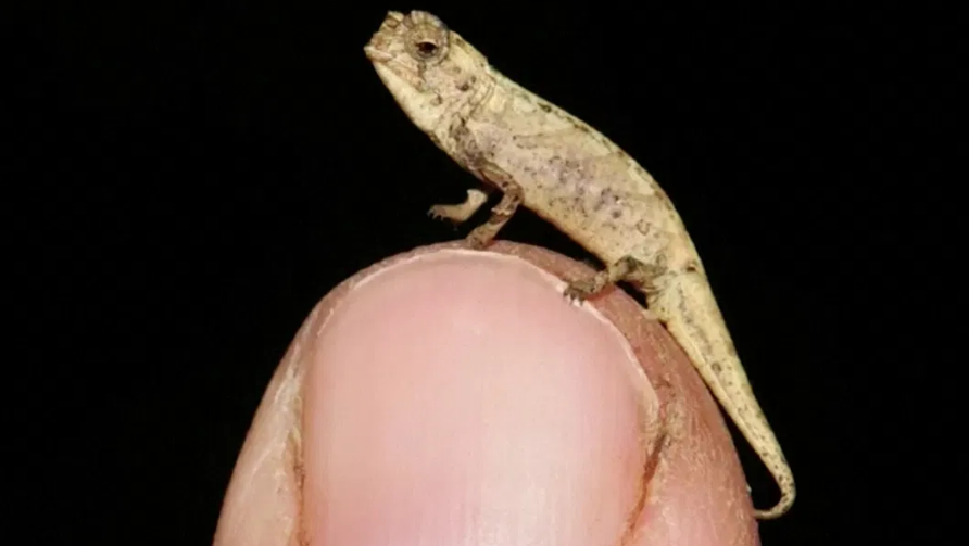Científicos descubrieron en Madagascar el reptil más pequeño del mundo, según un estudio publicado recientemente, cuyo cuerpo tiene las mismas características que el de los camaleones, pero cabe en la punta de un dedo.