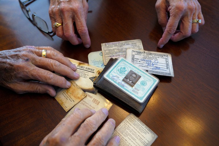 Además de sus documentos, también tenía singulares objetos como una tarjeta de racionamiento de cerveza e instrucciones de qué hacer en caso de un ataque nuclear.