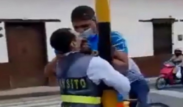 “A mí me respetás”, se escucha decir al agresor, mientras un ciudadano se pone en medio para tratar de calmar los ánimos. Entretanto, el agente le dice que él no es quien está infringiendo la norma y que lo que está haciendo es cumplir con su labor. “No te vas a ir de aquí hasta que no venga la Policía”, le dijo al agresor, quien se había subido una vez más a la moto, pero se bajó de nuevo, le dio una patada al agente, le lanzó unos puños y lo agarró fuertemente del cuello.