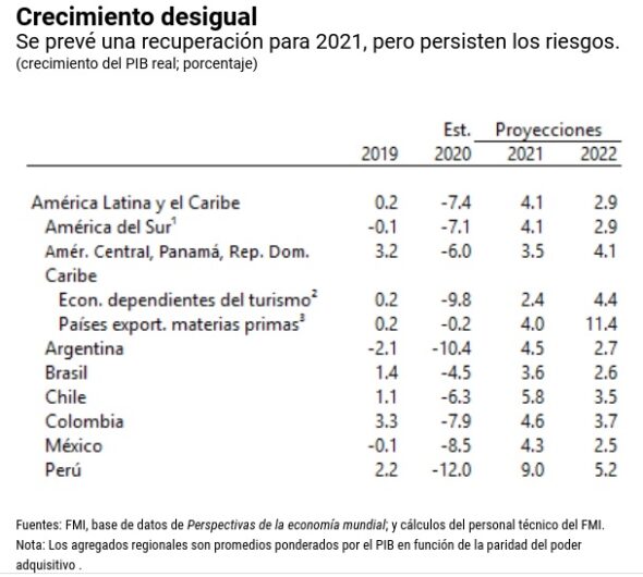 El FMI precisa que el pronóstico agregado oculta importantes diferencias entre los países de América Latina y el Caribe y además hace las siguientes precisiones: