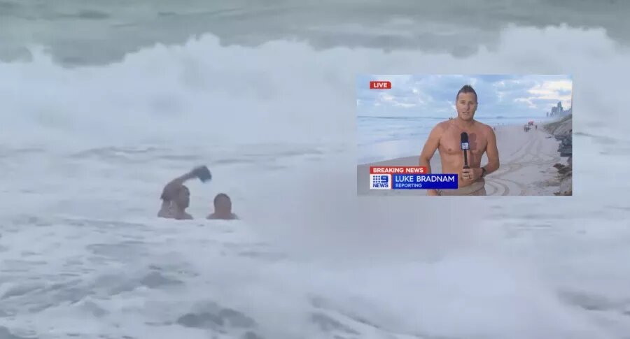 Bradnam, que trabaja en el estado de Queensland (Australia), acababa de finalizar un directo en el que hablaba de lo peligrosas que estaban las playas en Narrowneck, publica el canal donde trabaja 9 News.