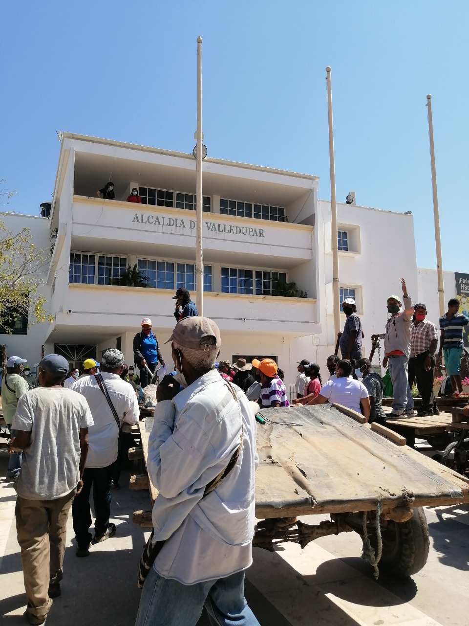 La protesta inició en los barrios La Nevada y 9 de Marzo, en caravana llegaron a la alcaldía colocando las carretas y caballos para llamar la atención de la Administración municipal. Tienen 14 años esperando la reconversión laboral y hasta la fecha solo 27 de los casi 400 afiliados a la Asociación de Vehículos de Tracción Animal de Valledupar.