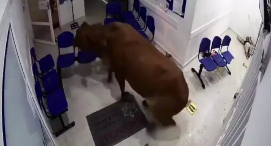 En el video, publicado en esta nota, se aprecia el susto que se llevaron los ciudadanos que estaban esperando la atención, que rápidamente intentaron huir del grande animal.