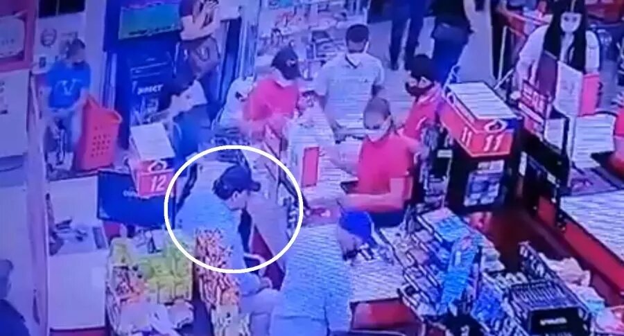 El video registrado en el Olímpica de la calle 82 con carrera 53, en Barranquilla, muestra que Libardo Parra (alias ‘el Flaco’ o ‘Guajiro’) estaba sentado frente a la cajera, mientras al parecer uno de sus ayudantes pasaba el mercado.