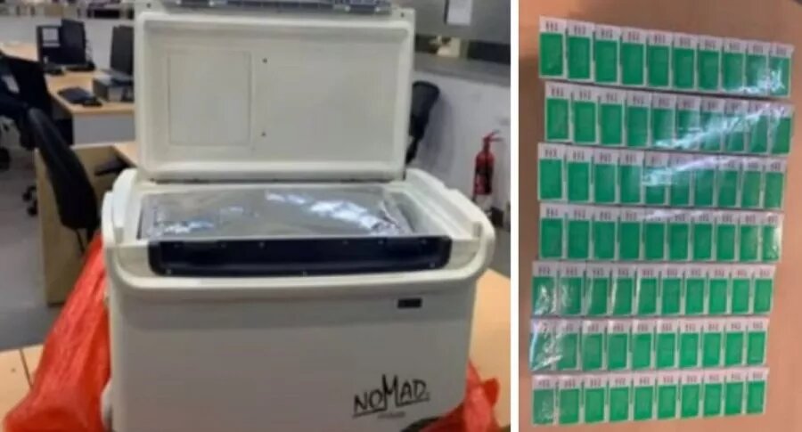 El cargamento con 70 vacunas fue decomisado en el aeropuerto El Dorado de Bogotá en la tarde de este miércoles. Autoridades verifican la autenticidad.
