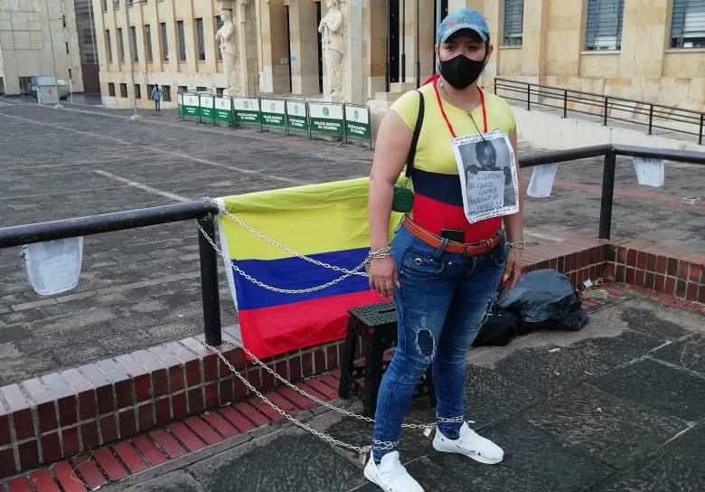 La madre aseguró que tomó la decisión de amarrase con cadenas en una plaza en Bucaramanga porque no está de acuerdo con la orden de una comisaría de Familia.