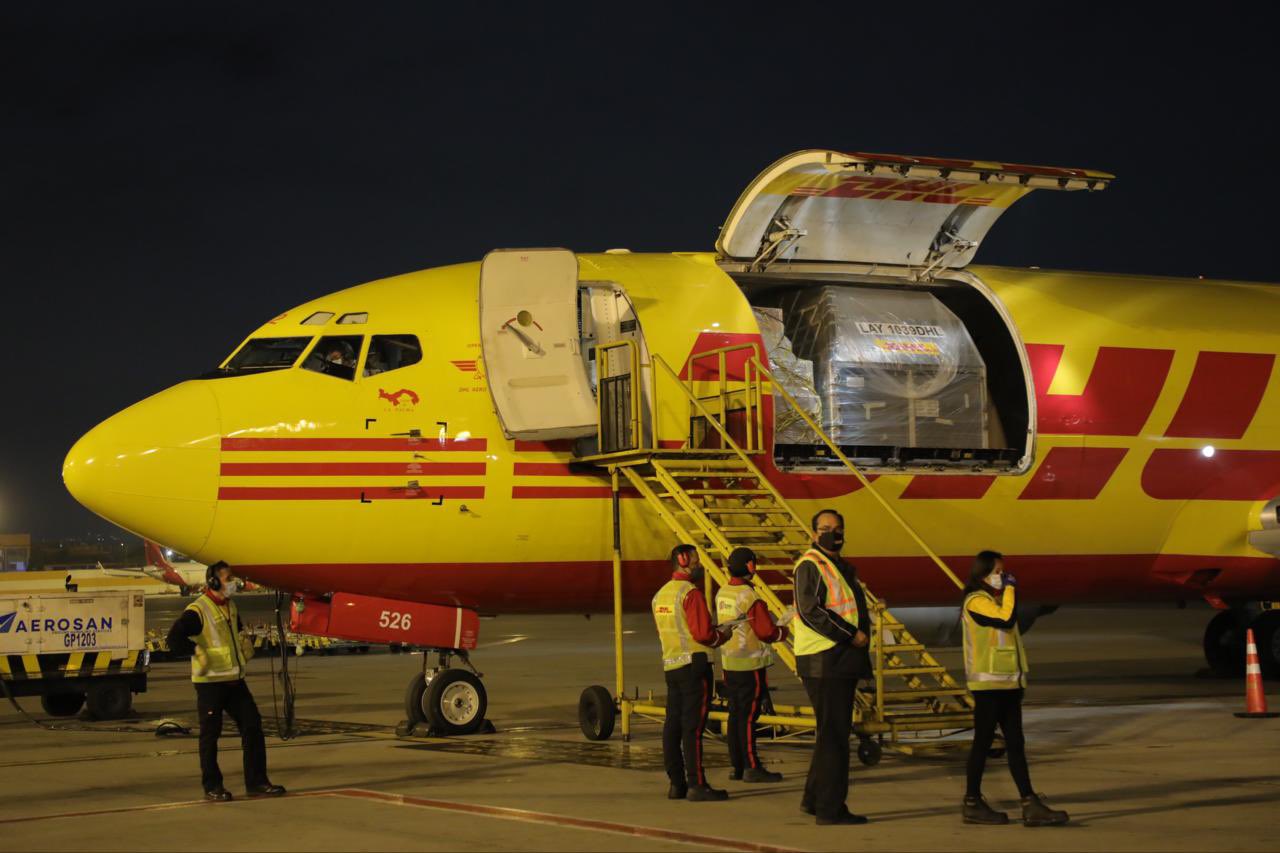 El nuevo lote de Pfizer llegó a las 5:05 de la mañana a bordo del avión operado por DHL, la misma empresa que trajo el primer cargamento de 50 mil dosis el pasado 15 de febrero, también de la farmacéutica Pfizer, y fue recibido por el Viceministro de Salud, Luis Alexander Moscoso.