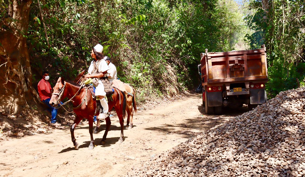 Mediante el sistema de Esquemas Especiales de Acompañamiento Comunitario (EEAC), la territorial Cesar – La Guajira aportó 1.722 bolsas de cemento, 230 metros cúbicos de gravillas y 1.400 varillas de acero de refuerzo para las obras de ejecución de las placas huellas en tramos críticos en la vía que conduce a las zonas más empinadas de esta región enclavada en la Sierra Nevada de Santa Marta; la inversión alcanza los $95 millones.
