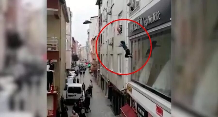 Una madre de familia, en la ciudad de Estambul, capital de Turquía, lanzó desde un cuarto piso a sus pequeños hijos para salvarlos de un voraz incendio.