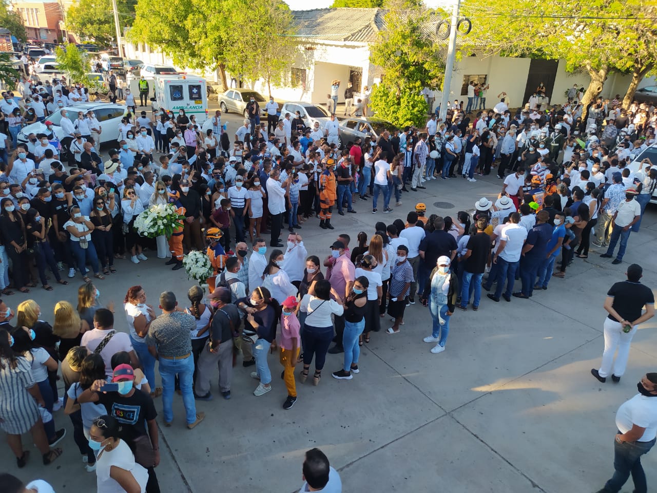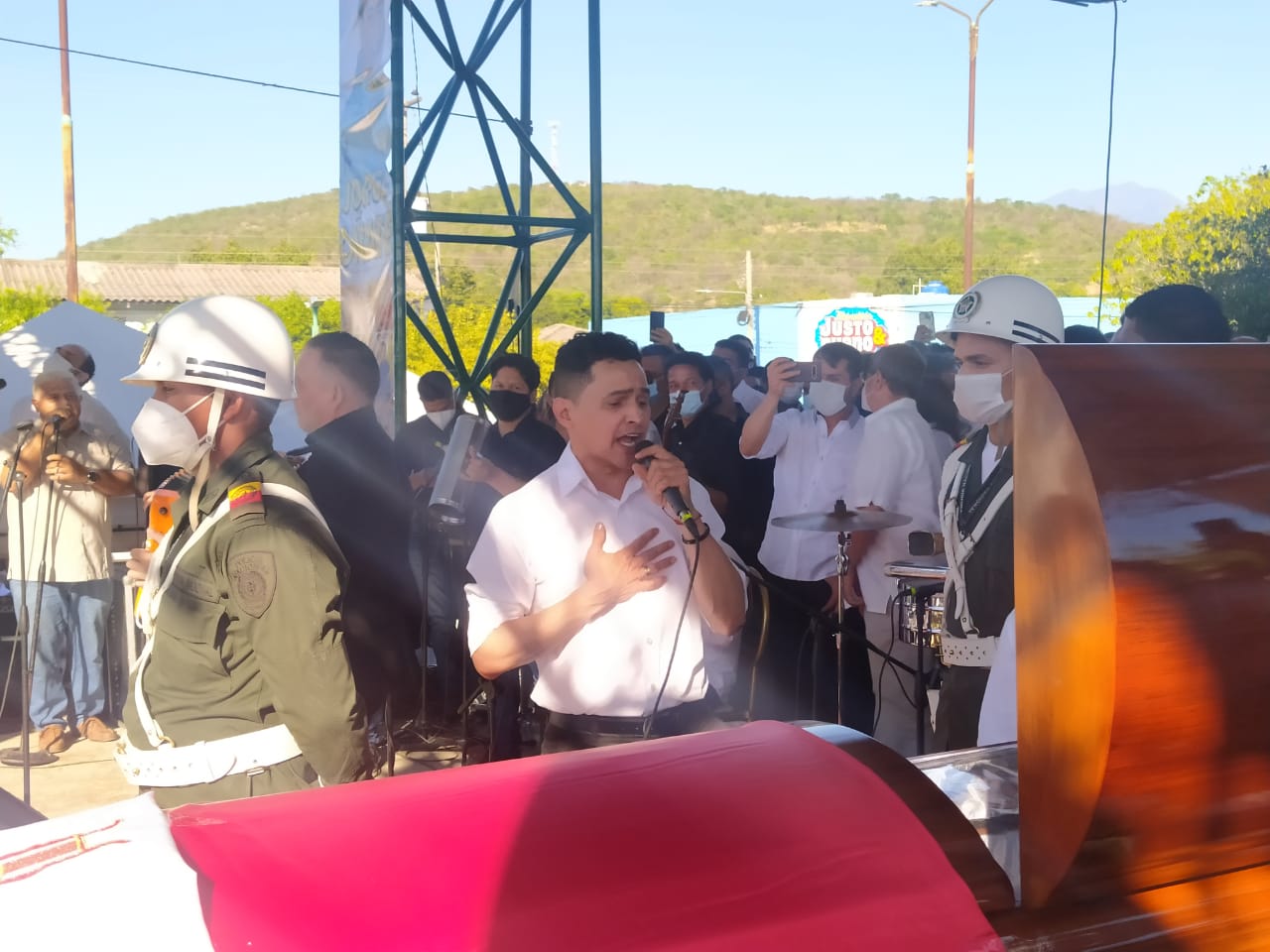 Al lado del féretro, cubierto con la bandera del municipio y rodeado de flores, se escuchó la nota del acordeón que resonó como si se trata de un himno, para dar paso a los primeros intérpretes. Su hijo José Jorge Oñate, fue el primero en participar, con su voz casi a punto de decaer, sacó fuerzas para rendirle homenaje a su padre con la canción ‘Lloraré’, y en el acordeón de Javier Matta.