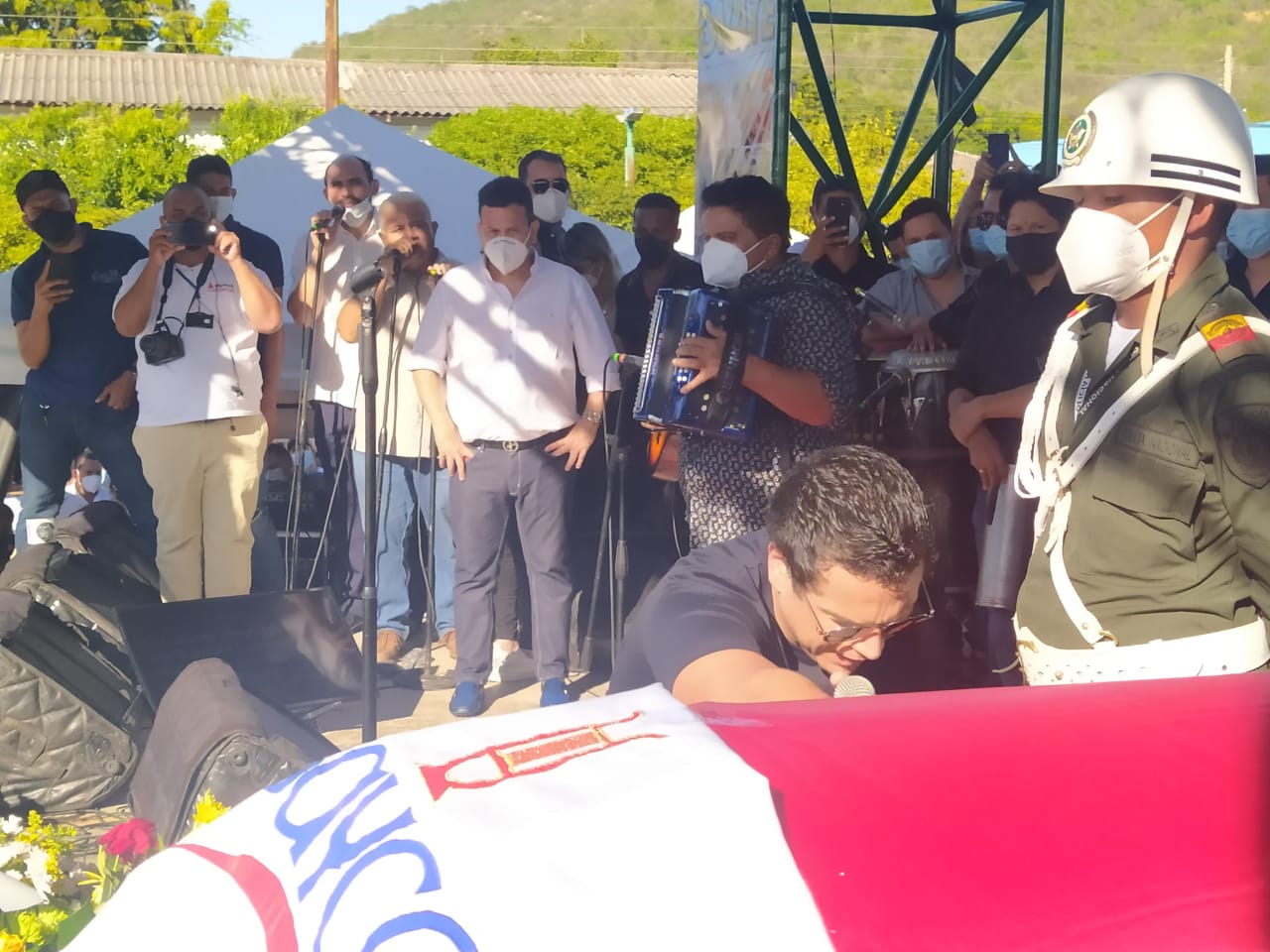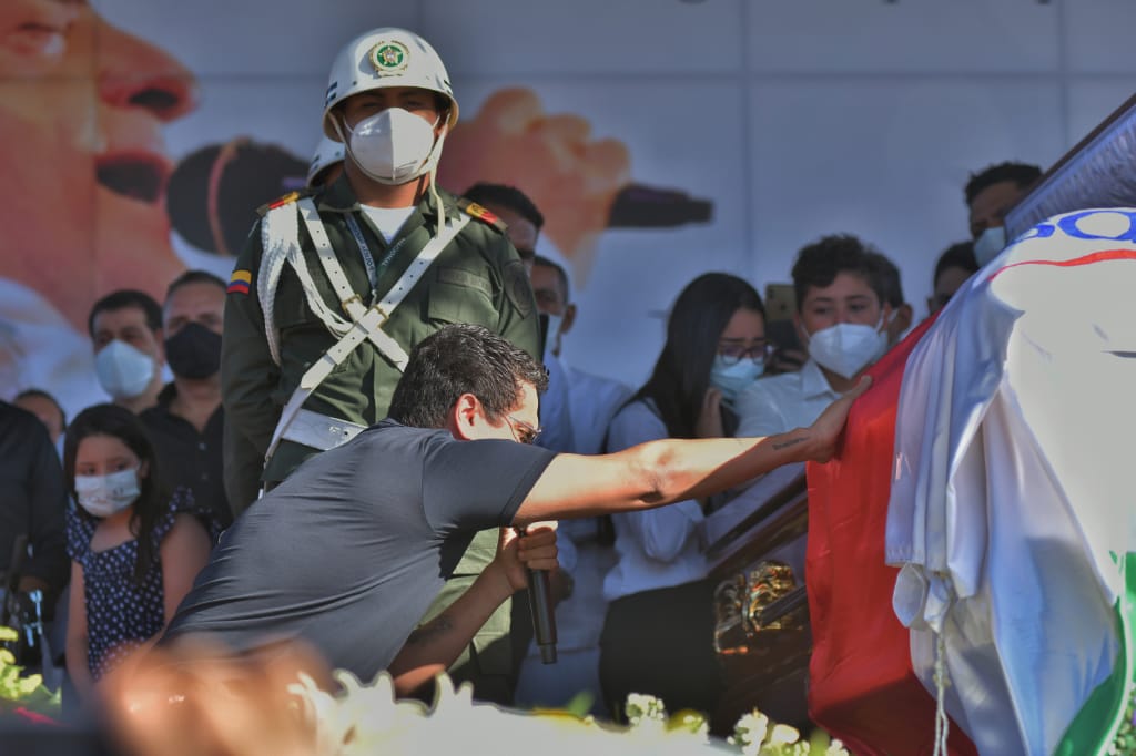 Peter Manjarres también se sumó al homenaje musical, y ante el féretro interpretó la canción ‘Calma mi melancolía’, sin dejar de corear ‘viva Oñate, vida, defendamos su legado’.
