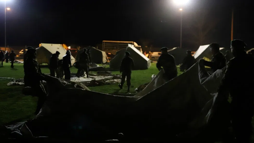 El Ejército y Protección Civil instalaron más de un centenar de carpas y distribuyeron camastros, mantas y generadores eléctricos para que las familias que no podían volver a sus casas pudieran pasar la noche protegidas del frío.