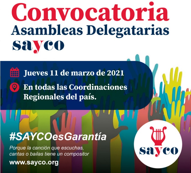 POR LA CUAL SE CONVOCA A ASAMBLEAS DELEGATARIAS DE SAYCO EN TODAS LAS COORDINACIONES REGIONALES DEL TERRITORIO NACIONAL