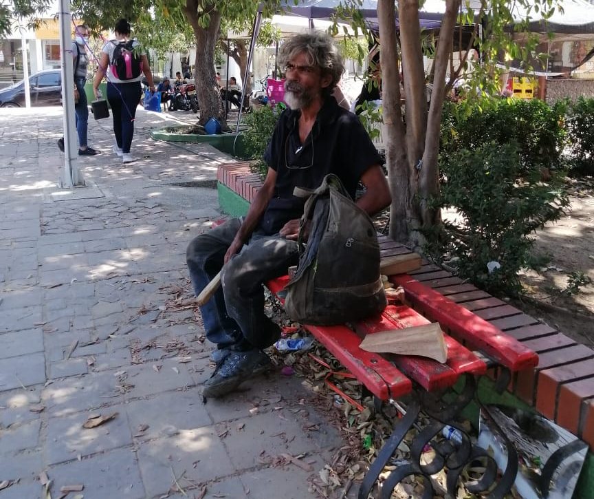 Y así es Pedro, libre por las calles de Valledupar. Camina y camina esperando por la bondad de los ciudadanos, come y duerme donde puede, pero lastimosamente su dura vida la intenta olvidar con las drogas, flagelo que lo tiene inmerso en un camino oscuro, cuya luz son las imágenes religiosas que talla en cada pedazo de madera que consigue.