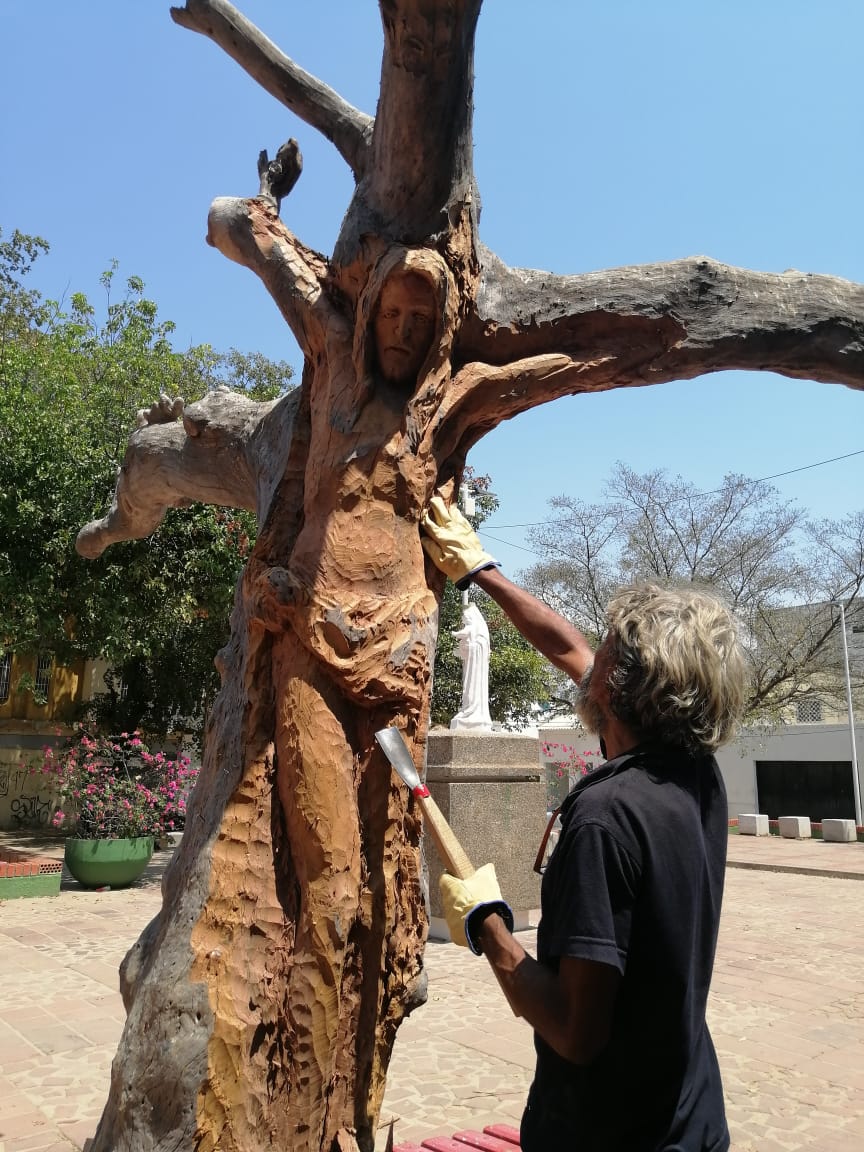 Valledupar emocionado con el Jesucristo tallado en un árbol