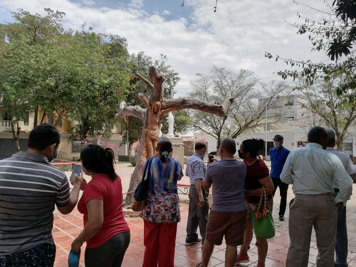 Valledupar es un municipio de fe, creyente y temeroso de Dios, y así lo ha demostrado con las constantes visitas, que desde el fin de semana se registraron en el Parque de Las Madres en el centro de la ciudad, donde la imagen de Jesucristo fue tallado en un palo del almendro por parte de Pedro Antonio Ortega Durán, un artista empírico que hoy vive sumido en el abandono y la drogadicción.