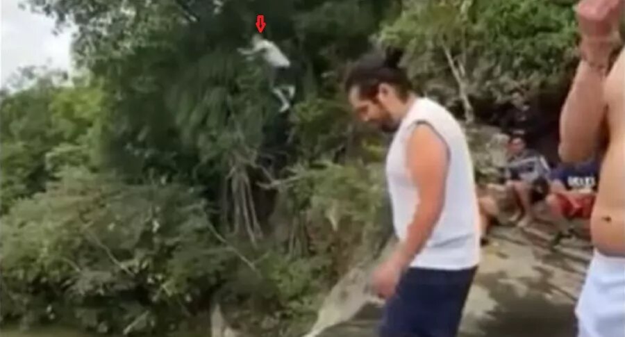 En medio de este cruce de versiones, la página en Facebook Eche Gafa publicó otro video grabado desde la parte alta del charco, y allí se observa cuando Diego Inchima toma impulso y brinca al agua.