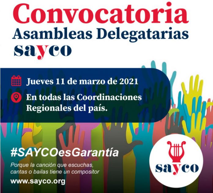 SAYCO convoca a las Asambleas Delegatarias en las modalidades Presencial y Virtual