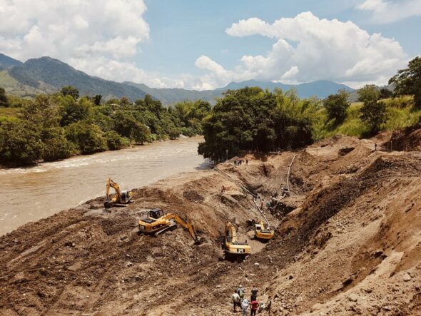 Fue necesario construir un jarillón para contener las aguas del Río Cauca, la remoción continua de material y el bombeo permanente de agua, para lograr la recuperación de los mineros.