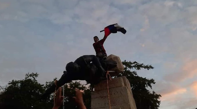 Sobre las 6:00 a.m. un grupo de indígenas Misak derrumbarron la estatua de Sebastián Belalcázar que apunta hacia la vía al mar que lleva a Buenaventura, en el Pacífico colombiano. En un acto que denominaron “justicia histórica”, la comunidad ancestral repitió lo sucedido en el paro de 2019 cuando en Popayán, en la cima del Morro de Tulcán, bajaron otra estatua del mismo personaje, la cual nunca volvió a ser reubicada.