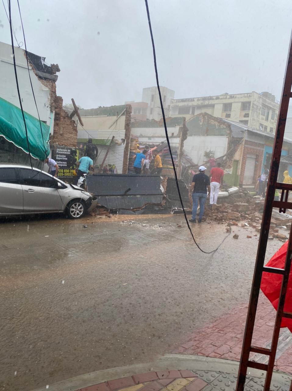 Los techos de tres viviendas contiguas que funcionan como locales comerciales en la carrera Novena con calle 16 B del centro de Valledupar, colapsaron la tarde de este miércoles cuando en la ciudad caía un fuerte aguacero.