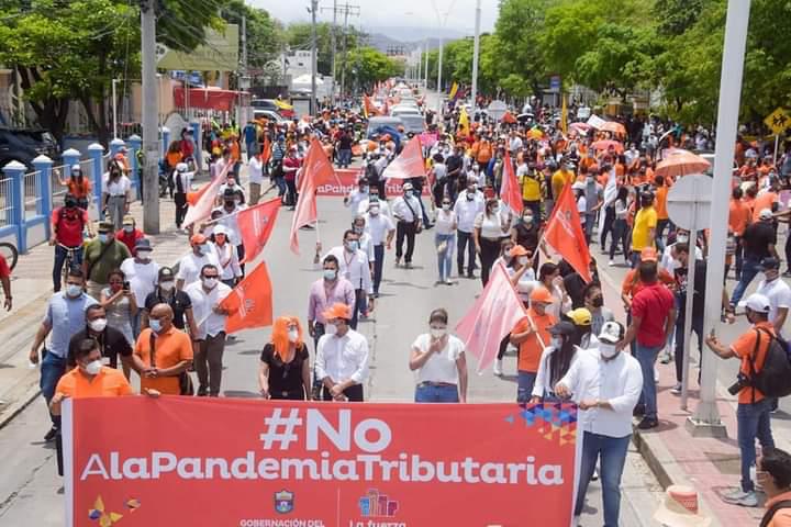 Gobernador Caicedo marchó en el Paro Nacional y le dijo “No a la ‘Pandemia’ Tributaria”