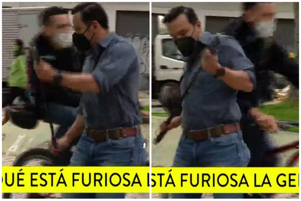 El periodista señaló que al llegar al lugar los marchantes dejaron en evidencia su rechazo a su presencia, aunque él les decía que iba precisamente a escuchar sus motivos, tuvo que refugiarse con las autoridades y los gestores de convivencia. El ánimo estaba tan agitado en el lugar que, mientras el periodista intentaba grabar, varios ciclistas pasaban muy cerca de él; sin embargo, uno de ellos se arriesgó más y alcanzó a empujar al comunicador.