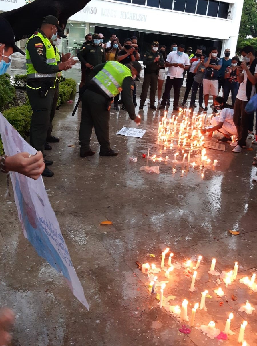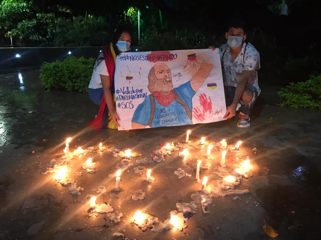 Pero además prendieron las velas en honor al estudiante Lucas Jaramillo, de 37 años, quien fue baleado a manos de desconocidos, que se movilizaban en un vehículo particular durante las manifestaciones en Pereira. «Nos están matando en Colombia», fueron unas de sus últimas palabras pronunciadas por el estudiante durante su lucha.