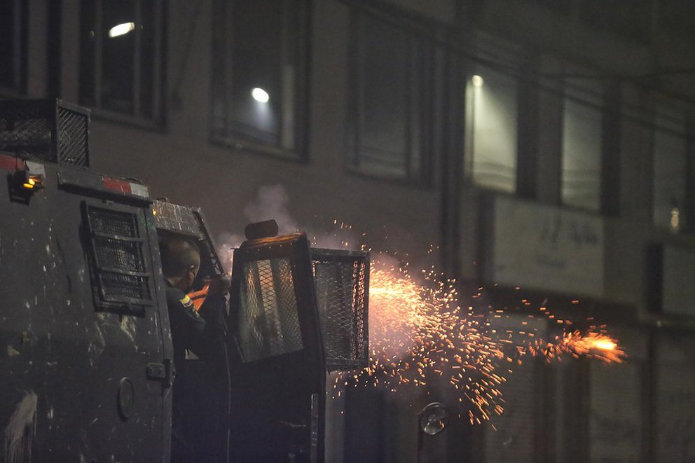 En Bogotá, algunos usuarios de redes sociales han calificado como disparos contra los manifestantes, el proyectil que las tanquetas del ESMAD disparan desde una cabina superior y que expide destellos similares a los de fuegos artificiales.
