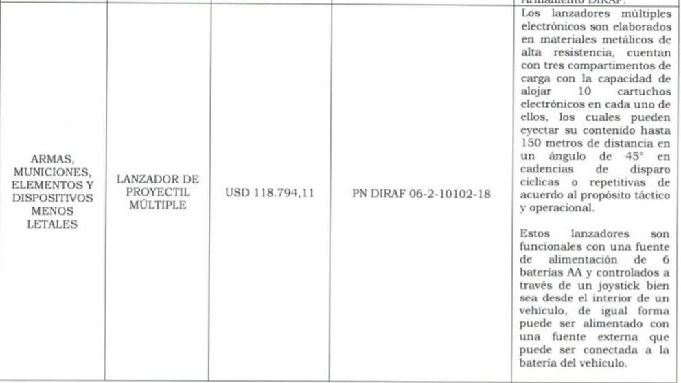“Estos sistemas son ideales para el lanzamiento de señales de aviso o alarma en controles o en determinados intentos de aproximación de embarcaciones. Disponen de capacidad para hacer mucho más efectivo el uso de la fuerza por su preciso envío de municiones en las zonas de disturbios”, dice una descripción de esa entidad.