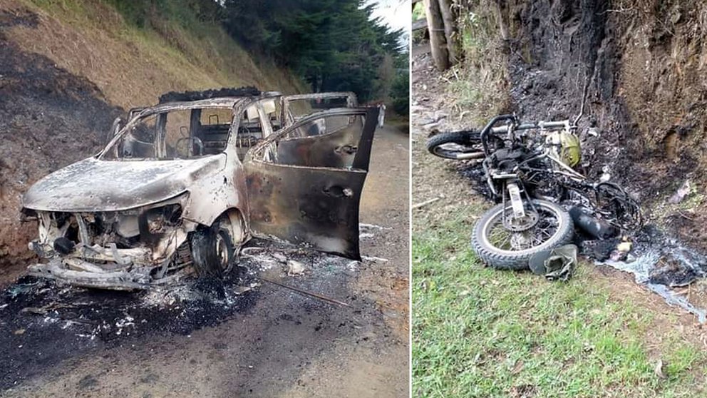 Incineran una patrulla y dos motocicletas de la Policía en el Cauca