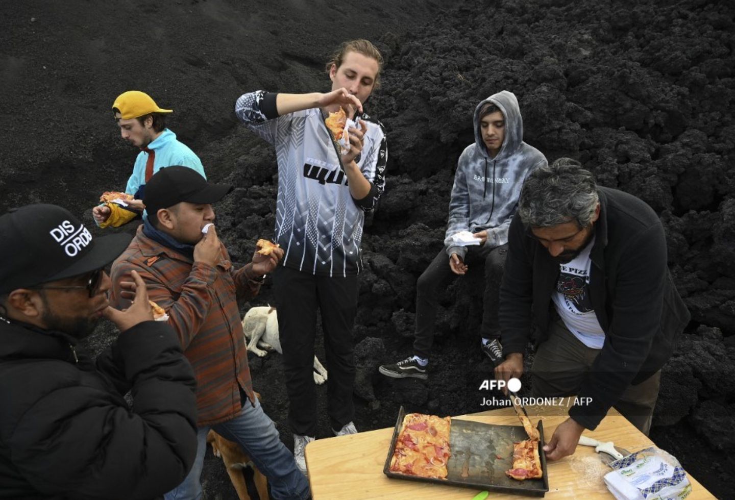 «Que haya un cocinero de pizza en las brasas del volcán es alucinante y único en el mundo», señala Felipe Aldana, uno de los turistas en el volcán, tras probar una rebanada de pizza.