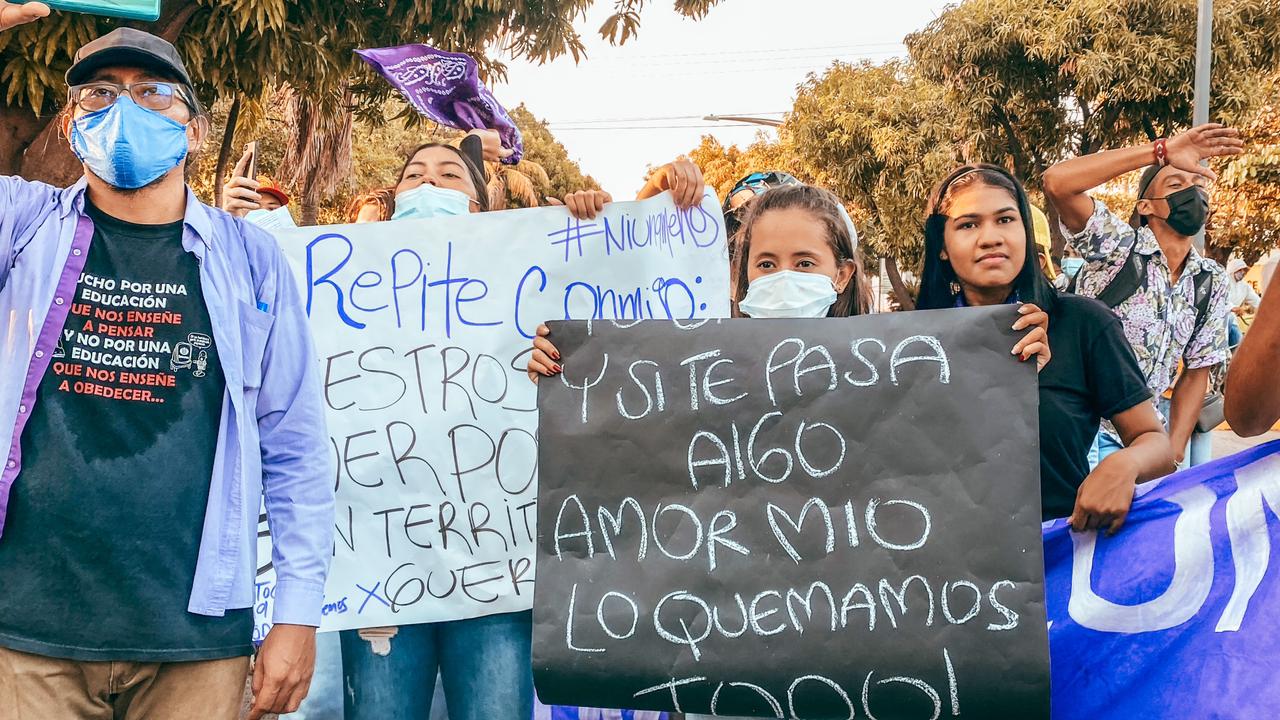Marcharon miembros de la red de estudiantes feministas de la Universidad Popular del Cesar, Colectiva re-evolución Feminista y Lideresa de Mujeres, además del acompañamiento de liderazgos independientes que se unen a la acción a nivel local.
